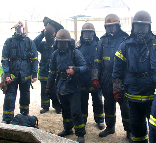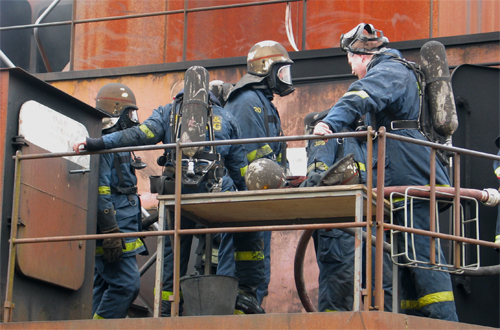 Oliebrande giver meget sorte uniformer, hjelme og masker