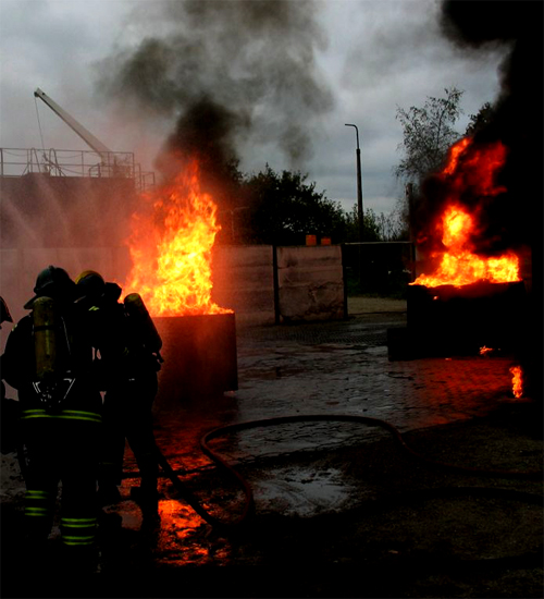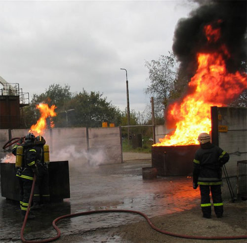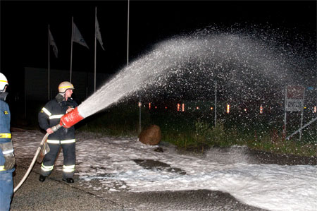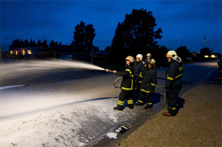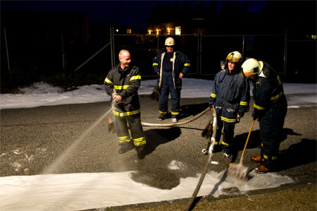 Her øves slukning i vædskebrand i åbnekar uden brug af skum