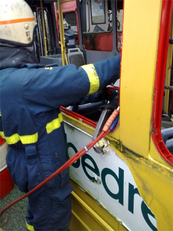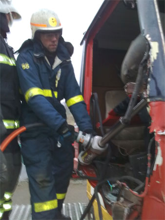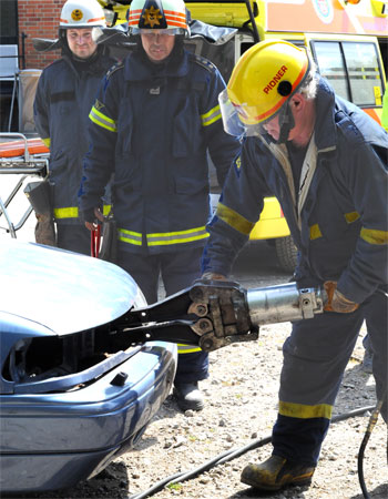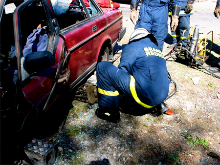 Køretøjet som bruges til frigørelse af fastklemt, en brandmand