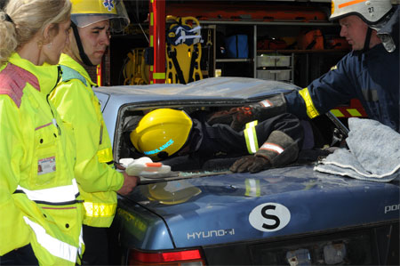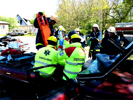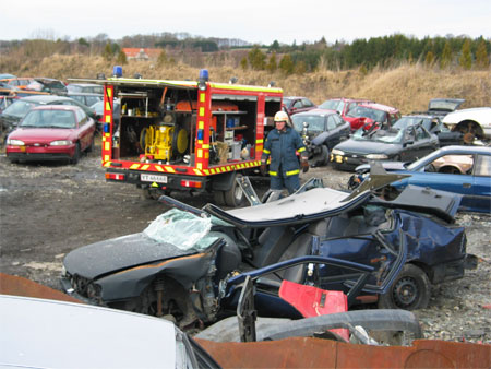 Der instrueres i frigørelse af person i bil