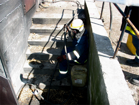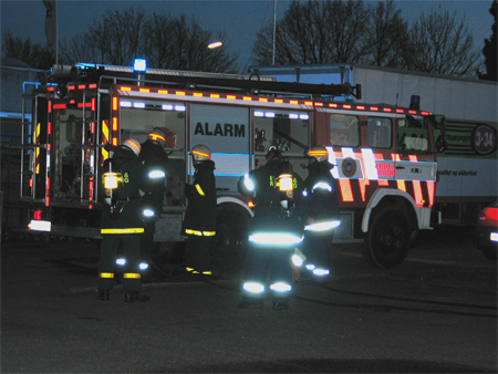 Her ses Svanehalsen på slangen bemærk hvordan brandfolkene