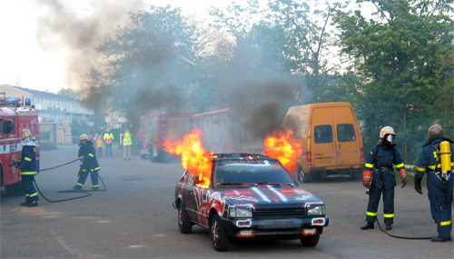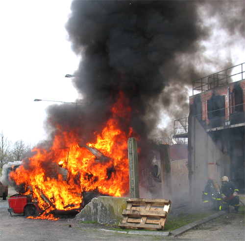 Ild i bil på parkeringsplads aftenøvelse med M-2 her blev brugt
