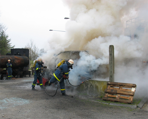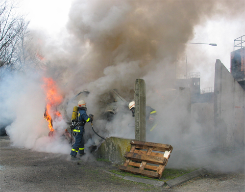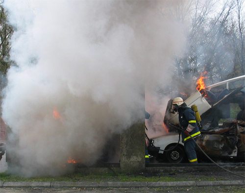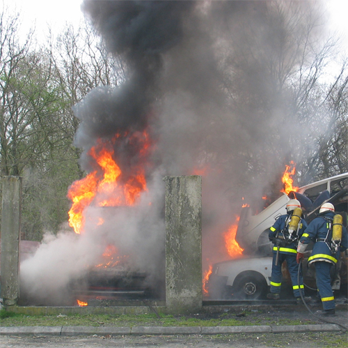 Der bliv indsat 2 HT-rør for at nedkæmpe branden i biler og