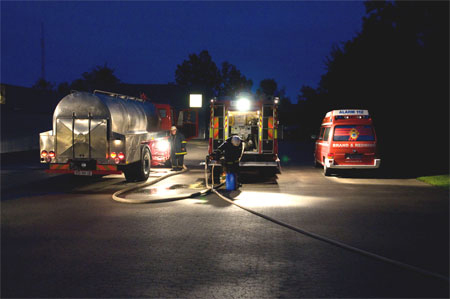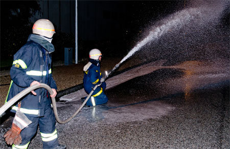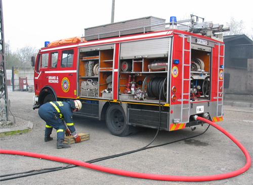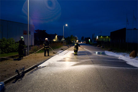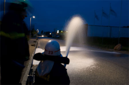 Sprøjterne er lige landet og slanger trækkes ud