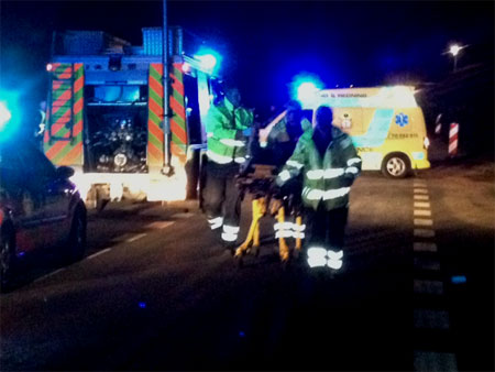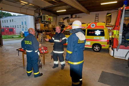Sprøjte og ambulance i baggrunden af ambulancefolkene