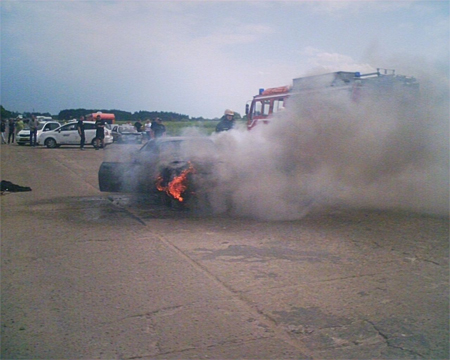 bryder en af gæsternes bil i brand.