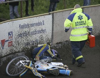 Førstehjælp 2005 Foto: Allan Nørregaard, Frederiksborg Amts Avis. Af nedenstående billeder. Førstehjælp ved Speed Way 2005